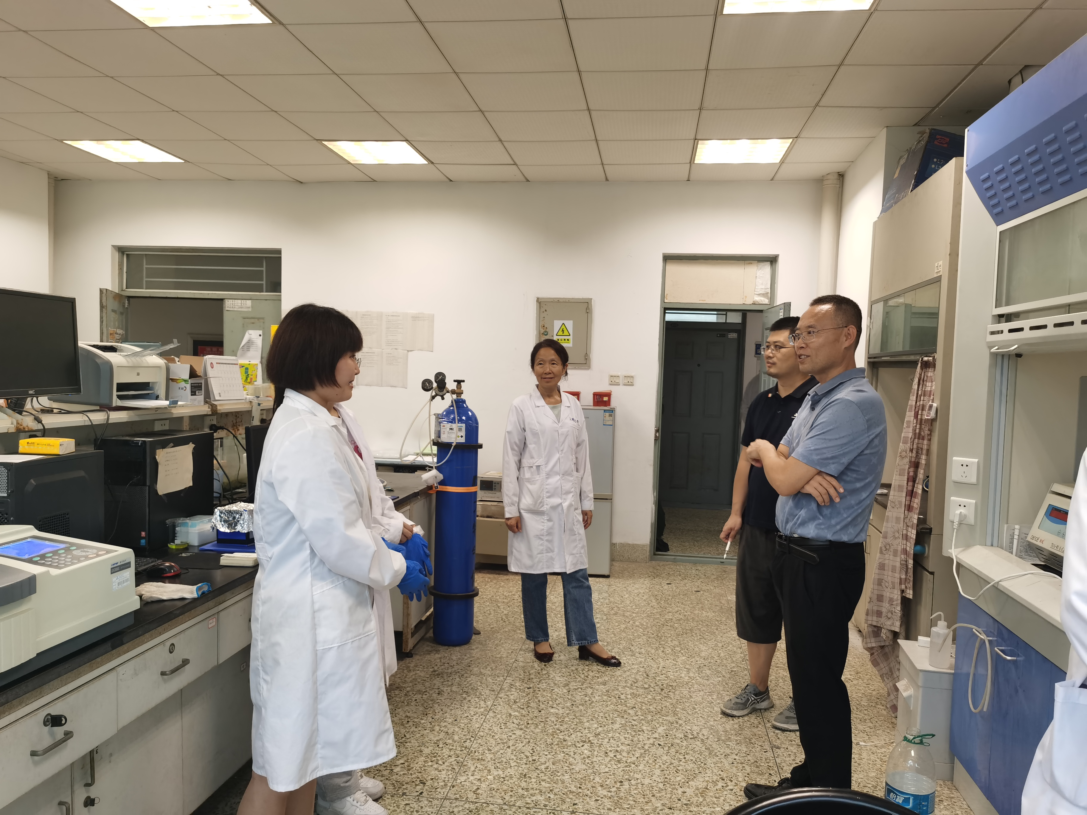实验室检查组着重对实验室用电安全、消防设施、实验室卫生和药品管理等方面进行检查。针对检查中存在的钢瓶使用状态标识不清、实验室内放置食品饮料、钢瓶未固定、私拉电线等违反实验室安全管理规定的情况,检查组提出现场整改和限期整改的意见,并对研究生进行现场安全教育。