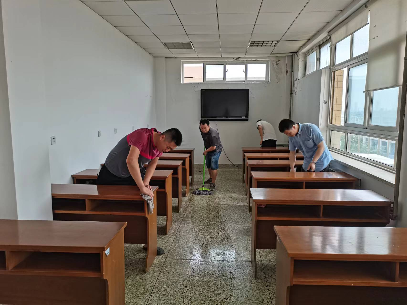 新学期即将到来,为了给环境科学与工程、资源与环境专业研究生提供良好的学习环境,8月8日,环境联合党支部的党日活动中,教师党员与学科硕士生导师利用入校机会,对学科研究生上课教室进行了改造和清理,更换了新的桌椅,调试了电脑和显示器,清扫了环境卫生,使研究生学习教室面貌焕然一新。
