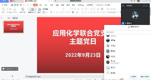 为进一步规范使用党徽党旗,坚决维护党徽党旗的尊严,激励党员“不忘初心、牢记使命”,坚定理想信念,2022年9月23日,应化联合党支部开展了“规范使用党徽党旗、坚决维护党徽党旗的尊严”主题党日活动。按照疫情防控要求,活动采用线上进行,应化支部全体教师党员和研究生党员参加。